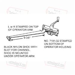 There is a nylon shoe with a slot for the channel, mounted on top of the arm.