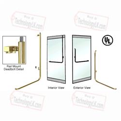 ORDERING OPTIONS When ordering Deadbolt Handles you must specify: DB100, DB110 or other Interior Handle Series shown on page DC27 in the DC04 catalog Exterior Handle Option (page DC29 click here) Right or Left Hand (as viewed from the outside) Rail Mount (for doors with full length rails) or Glass Mount (for doors with patch rails) Single or Double Door Strike (for single acting doors) Brushed or Polished Stainless, Satin or Polished Brass Finish