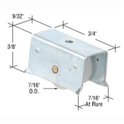 Roller is also used on sliding storm and showcase windows. It has a 7/16 inch wide stamped steel housing and a concave nylon wheel.